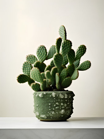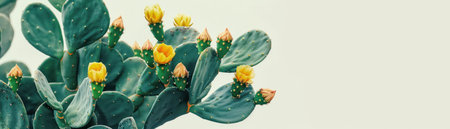 Opuntia cactus. Creative layout. Minimal style still life.