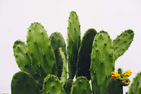 Huge Opuntia cactus. Creative layout. Minimal style still life.
