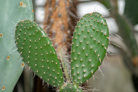 The blind prickly pear has an obvious trunk with many branches and grows up to 5 feet tall. prickly pear cactus in a greenhouse in the sun