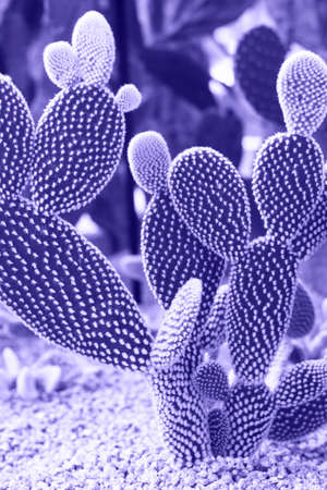 Exotic cactus trending color purple 2022 close-up, natural background.