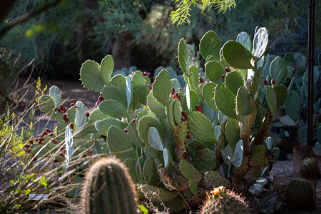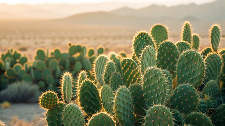 group of prickly pear cactus at sunset