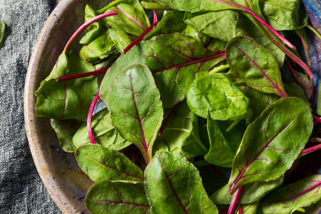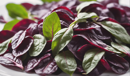 close up fresh organic red spinach leaves
