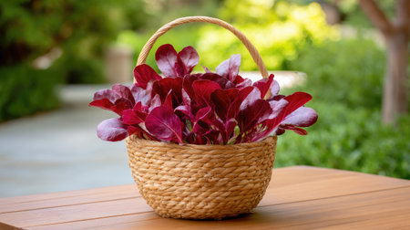 Fresh red salad greens in a basket, ready for a healthy meal