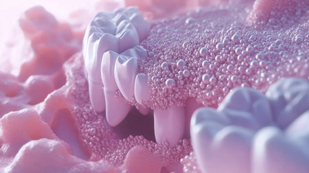 This captivating close-up image showcases a creative representation of dental health, highlighting textures and colors associated with oral care. The unique design emphasizes the importance of maintaining healthy teeth with an artistic flair.