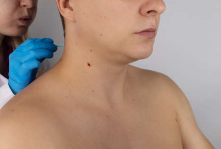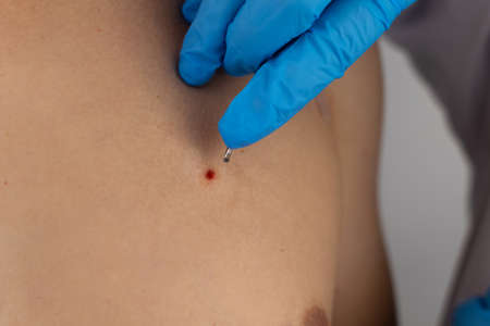 Treatment of wounds after removal of the moles. Laser removal of birthmarks. Closeup.