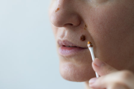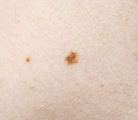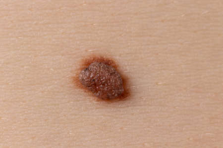 Big brown mole on human skin. Dermatology prevention moles female skin doctor.
