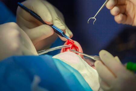 Oral surgery operation,cist apicoectomy, dark operation room