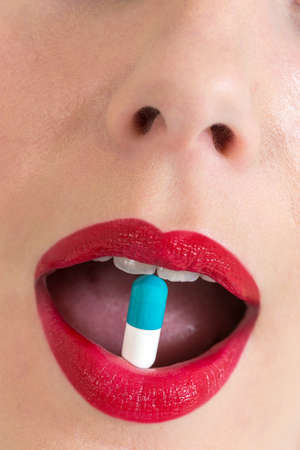 Woman's mouth with pill inside