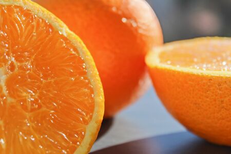 Closeup fresh and healthy orange fruit blured background, organic diet fruit.