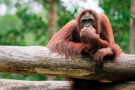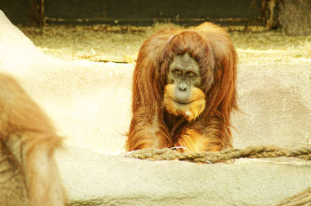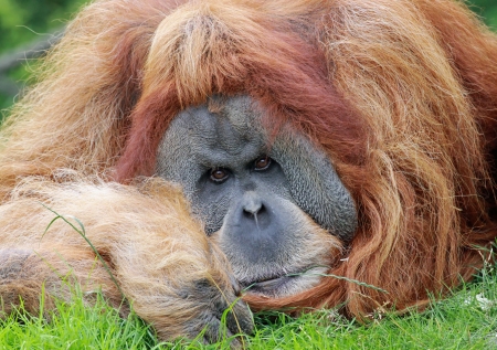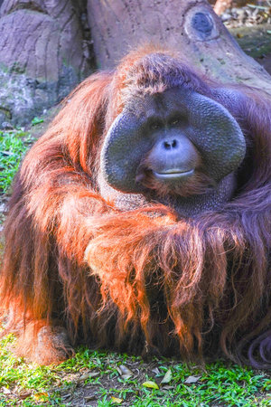 urangutan pongo pygmaeus with cheek pad resting relaxing in park