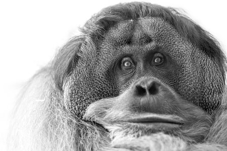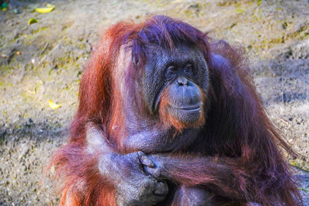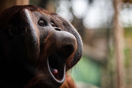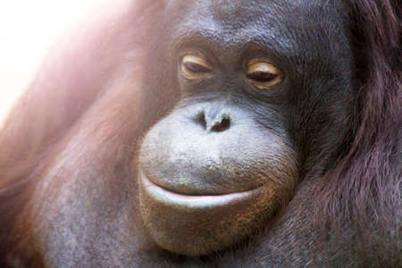 beautiful bornean orangutan in closeup, critically endangered primate specie from Borneo