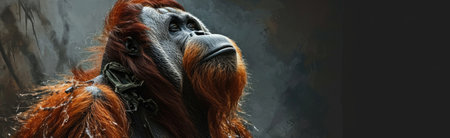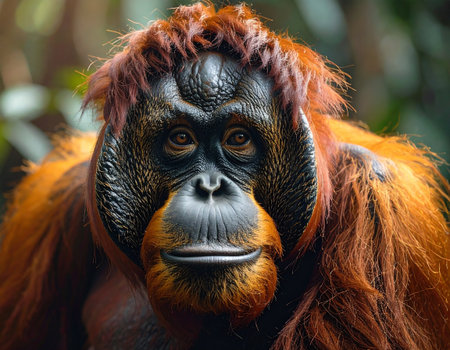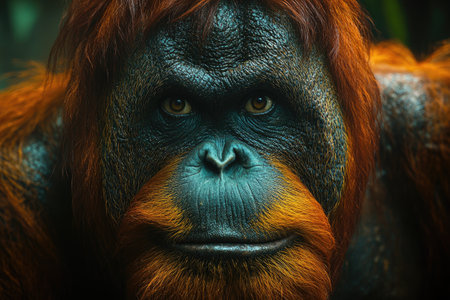 A striking portrait of an orangutan, showcasing its expressive eyes and rich fur textures. The image captures the essence of wildlife and the beauty of nature.