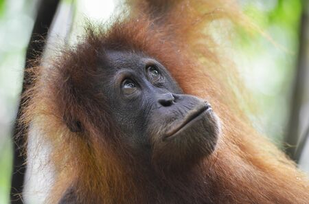 Portait of a cavitve Sumatran Orangutan (lat. Pongo abelii)