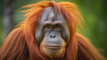 Orangutan portrait animal. Jungle mammal. Generate AI