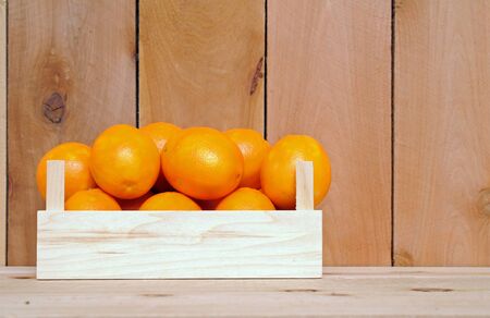 naval orange fruit in crate on wooden background