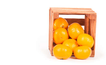 Mandarin in an old box on a white background.