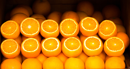 Closeup of sliced oranges on a market