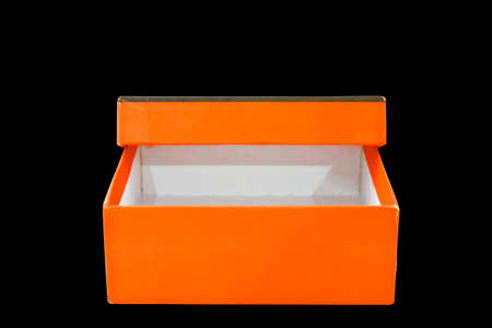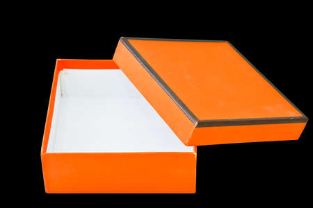 Open brown and orange cardboard box with lid