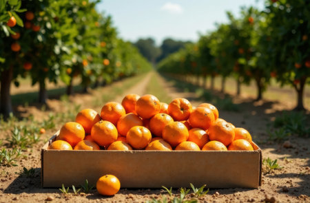 Box of ripe orange tangerines AI generated image
