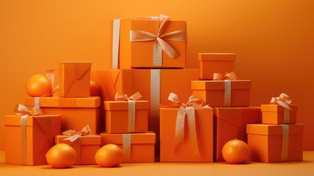 Orange gift box with ribbon