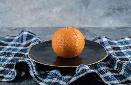 Fresh ripe orange on black plate