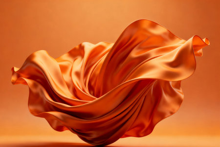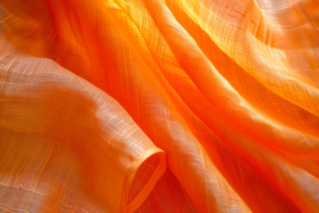 Elegant Draped Orange Fabric Soft Texture Background Studio Shot art wave fold silk flow rich warm
