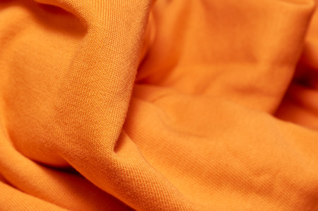 Orange fabric texture as a background, close-up macro photo.