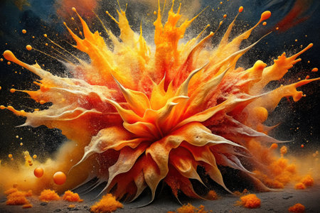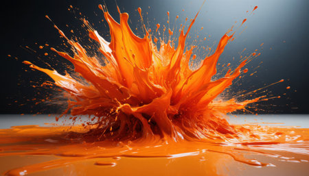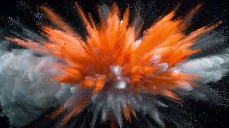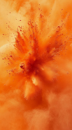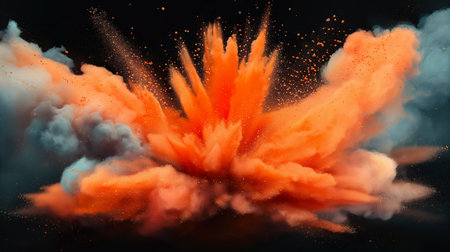 Orange powder explosion, dynamic burst of color. Abstract art and creativity concept