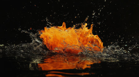 A stunning display of vibrant flames erupting from a water splash, creating a dynamic contrast against a dark background. Ideal for artistic projects.