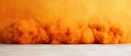 A dynamic explosion of vibrant orange smoke fills the sky, creating a dramatic and artistic effect. The bright cloud contrasts with a gray backdrop, showcasing energy and creativity in this striking visual. Perfect for artistic and conceptual projects.