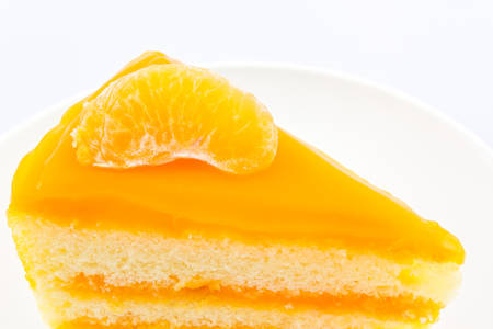 Oranges cake slice,fruit cake on white background.