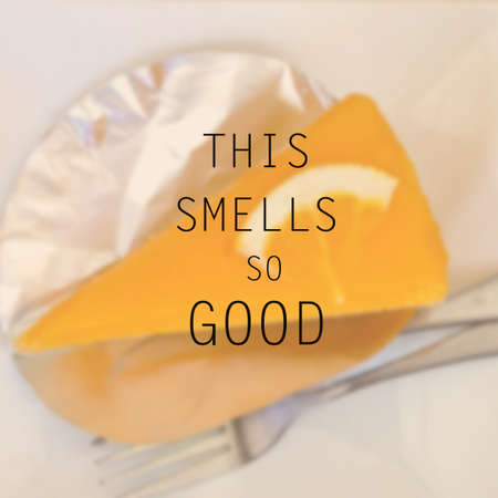 Orange cake on wood plate