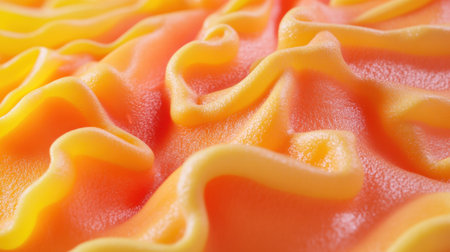 Swirled orange sorbet with a smooth texture.