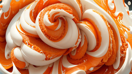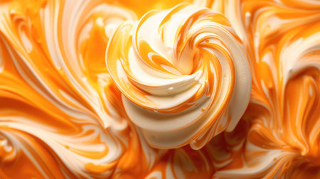 Abstract swirls of orange and white cream texture