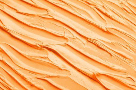 Strokes of pale orange oil paint as background, closeup