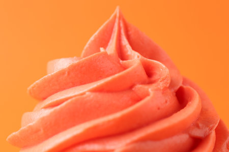 White Buttercream Frosting Texture on Vibrant Orange Background. Sweet Food Photography, Close.up