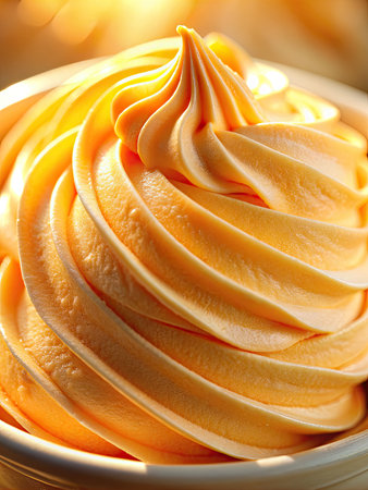 Waves of mango or apricot sweet ganache or cream for covering and decorating cakes, macarons and desserts