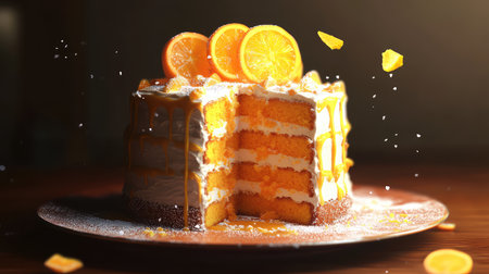 Orange cake and cream. Healthy Layered Orange Cake. Homemade bakery concept for birthday cake or valentine dessert.