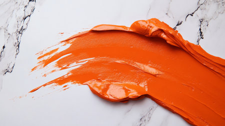 orange lipstick with visible texture, on marble background, generative ai
