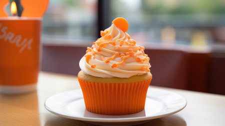 Orange Swirl Cupcake with White Liner on Black Background