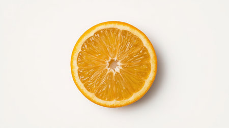 Simple white background with a fresh orange slice, placed perfectly in the center