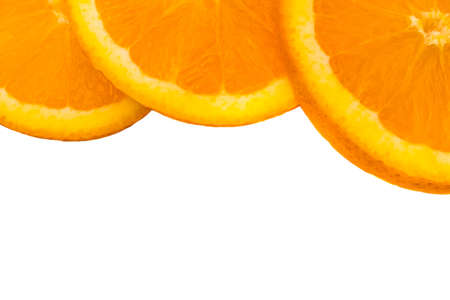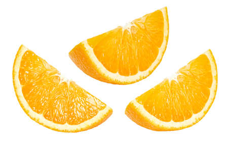 Three slices of orange on a white isolate background