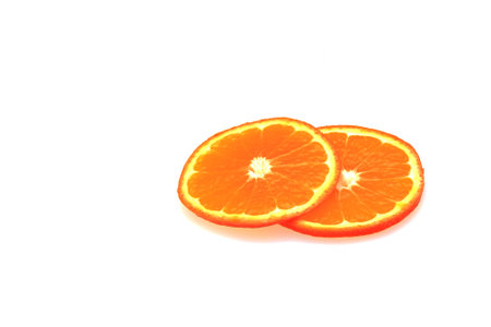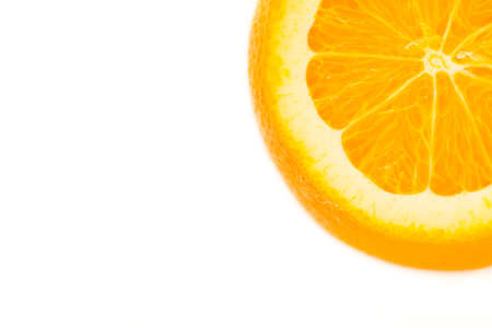 Ripe slice of orange against a white background