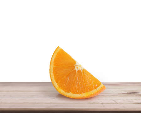 Slice of ripe orange isolated on white background