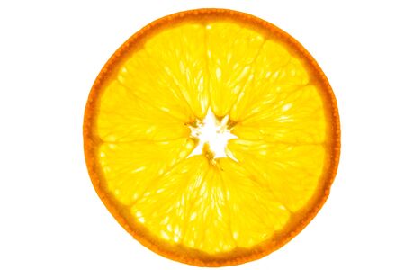 Slice of fresh orange isolated on white background. Top view.