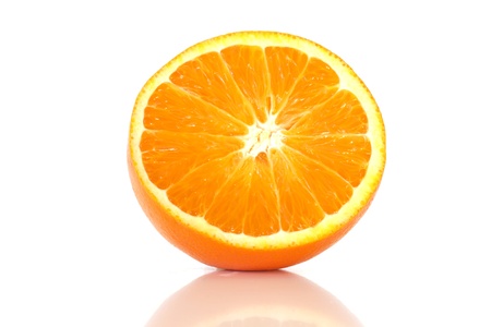 Half juicy orange isolated on white background.