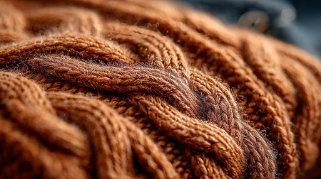 Soft, warm, and inviting, brown cable knit sweater texture creates a cozy and comforting image, perfect for autumn and winter themes