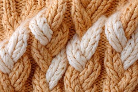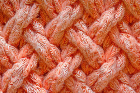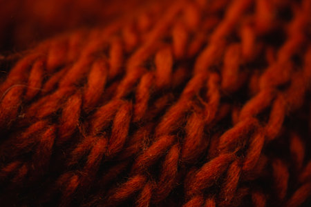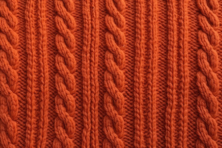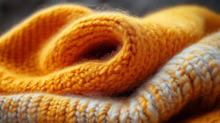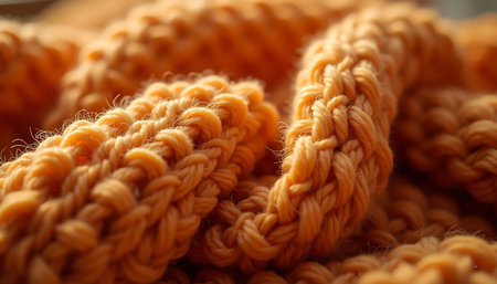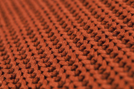 Detailed shot of a knit textile displaying its intricate texture and warm hue, suggesting comfort and craftsmanship Use as background or design element.