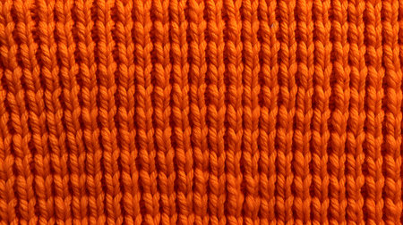 Close-up image showcasing a warm orange knit fabric with rich texture and fine details. Perfect for highlighting cozy fashion or textile design.
