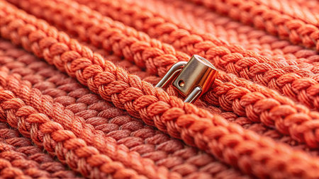 Close-up of textured red rope knots in detailed pattern. That the image is generated using AI.
